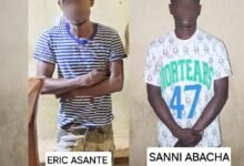 Two men who attacked and robbed two brothers at Agbazo have been sentenced to a total of 34 years’ imprisonment by the Amasaman Circuit Court. Lawrence Fumato, alias “Rasta,” 28, and Daniel Dzoka, alias “Alkaline,” 20, pleaded guilty to conspiring to rob Joseph Npunpir Yakpaiba and his brother Budali Sulley of their motorbike, mobile phones, and cash. Mrs. Akosua Anokyewaa Adjepong, the relieving judge, handed each of them 17 years in prison with hard labour. They were also ordered to pay for repairs to the Royal motorbike they stole and damaged. Their accomplice, Nii Aryee, remains at large.