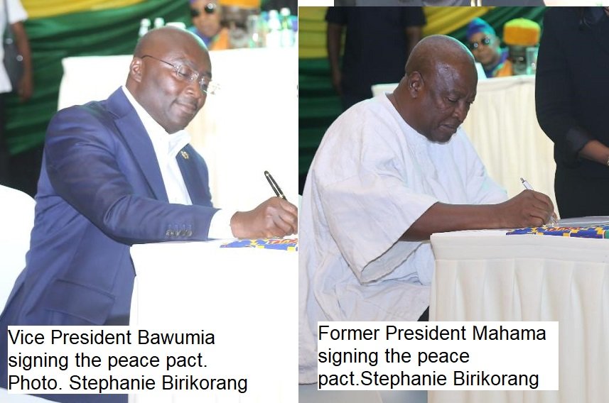 Others who signed the Peace Pact were Dr Augustus Lartey of the Great Consolidated Popular Party (GCPP), Dr Mahama Ayariga, All People’s Congress (APC), Nana Akosua Frimpomaa Kumakuma of the Convention Peoples Party (CPP), Kofi Apaloo of the Liberal Party of Ghana (LPG), Alhaji Mohamed Frimpong of the National Democratic Party (NDP), George Twum Barima Adu, independent candidate.