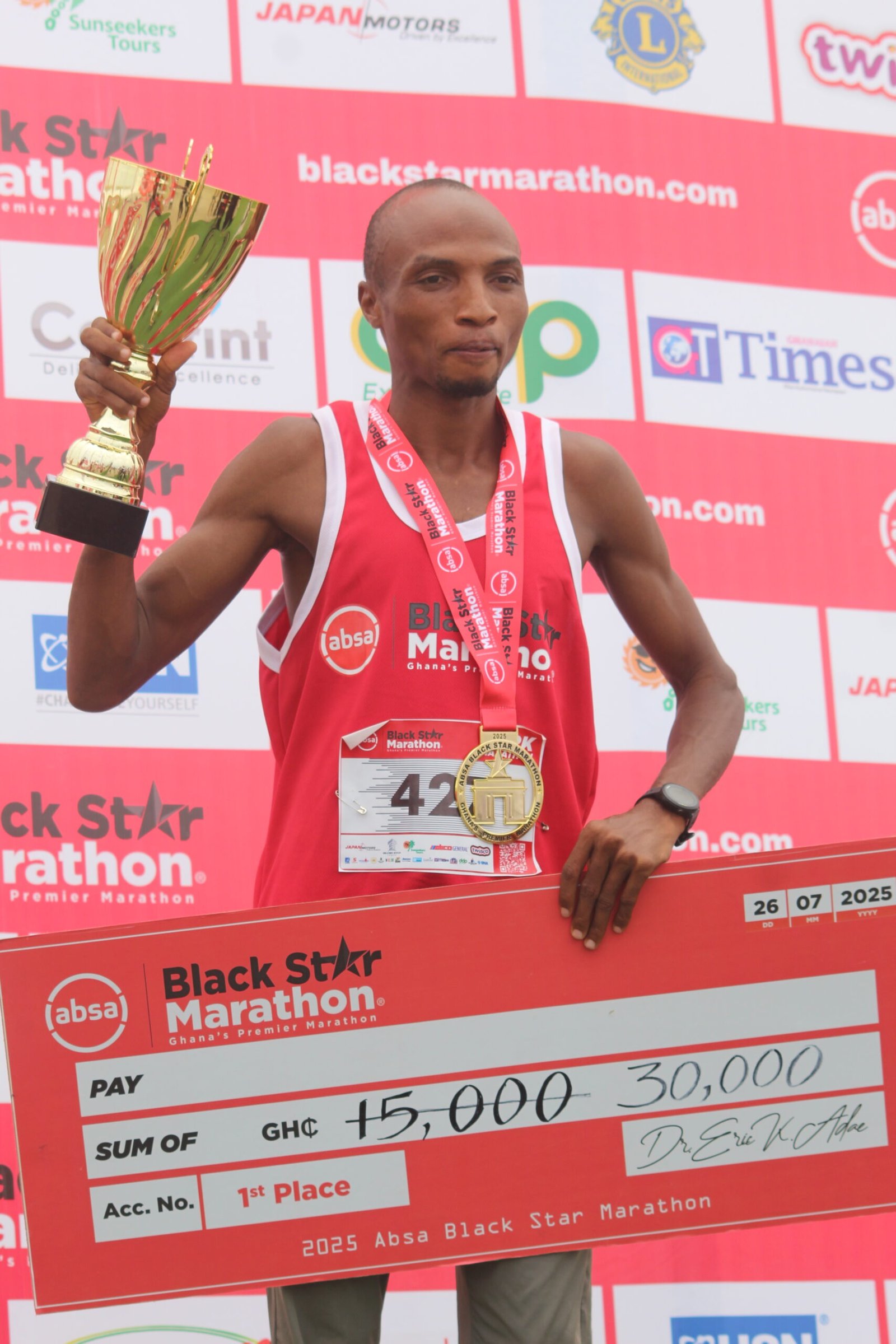 Koogo Atia, a 26-year-old Master of Philosophy student at the University of Education, Winneba (UEW), was crowned the winner of the 42.2-kilometre Absa Black Star Marathon that took place at the Black Star Square in Accra last Saturday.