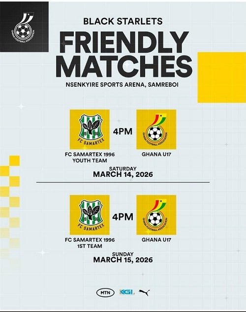 The Black Starlets will intensify preparations for the upcoming 2026 U-17 Africa Cup of Nations with a double-header of friendly matches against FC Samartex 1996 at the Nsenkyire Sports Arena, Samraboi.