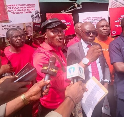 Former workers of the Bogoso-Prestea Mine on Wednesday, December 10, massed up at the Ministry of Lands and Natural Resources and the Minerals Commission in Accra to demand payment of their long-overdue benefits.