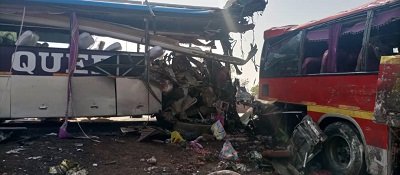 Inspector Owusu said that a Yutong bus with registration number GT 3345-16 was heading towards Zebila in the Upper East Region from Kumasi, while the other vehicle with registration number AC 1699-20 was travelling from Garu also in the region to Kumasi when they crashed at Sarekyekuta.