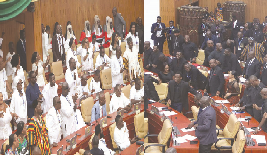On the back of an overwhelming victory at the December 2024 presidential and parliamentary polls, the majority side, covering two-thirds of the hallow chamber of Parliament, was a sea of white as they turned out in their numbers to receive President Mahama to execute the constitutional exercise.