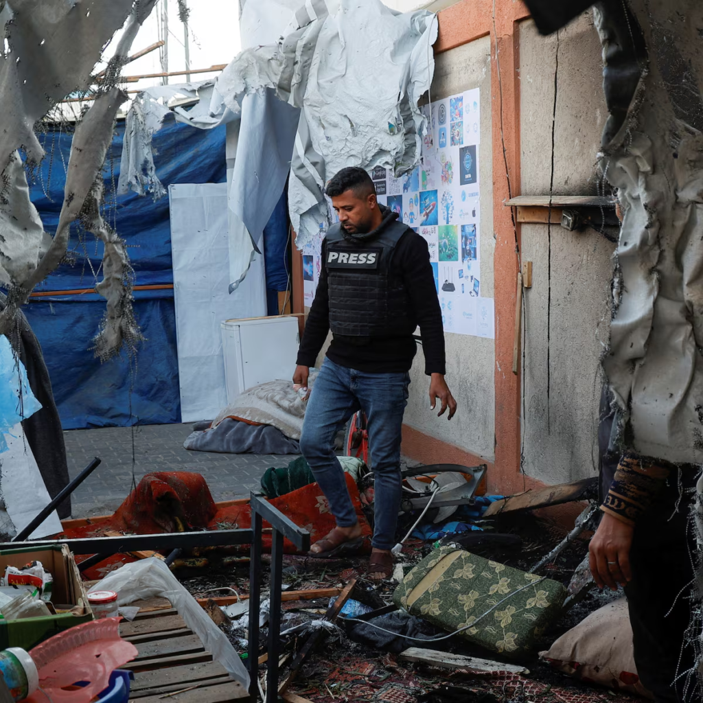 A palestinian journalist was killed on Monday and nine others were wounded, some critically, when an Israeli air strike hit a tent used by local media in southern Gaza, medics and the local journalists’ union said.