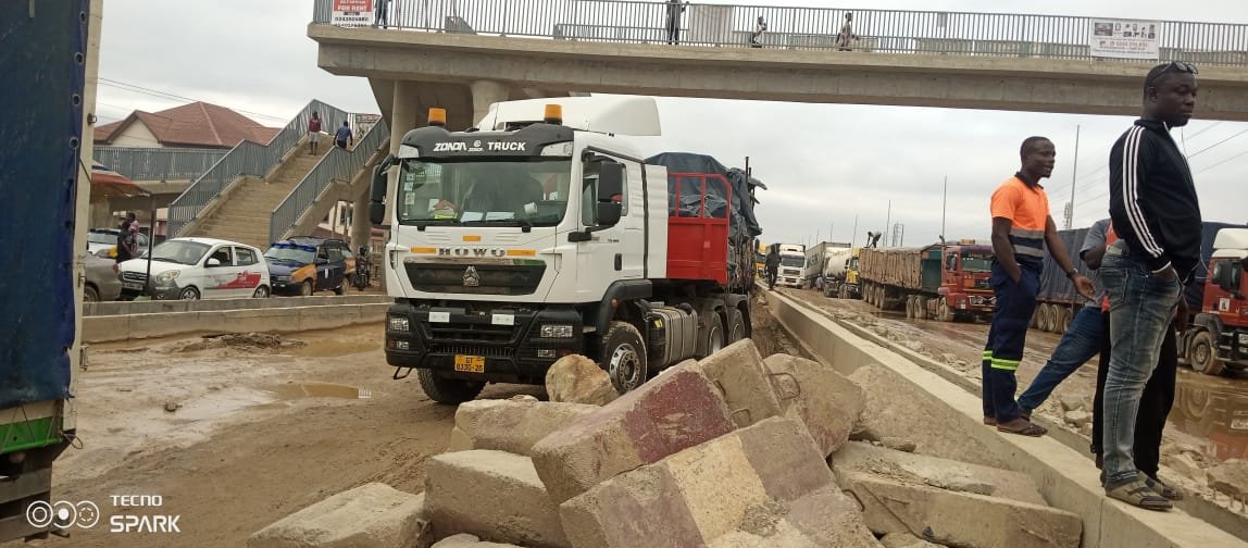 The incident created a huge backlog of traffic stretching to Amasaman on both sides, bringing movement to a standstill from about 5:00 p.m. on Thursday until late Friday morning.