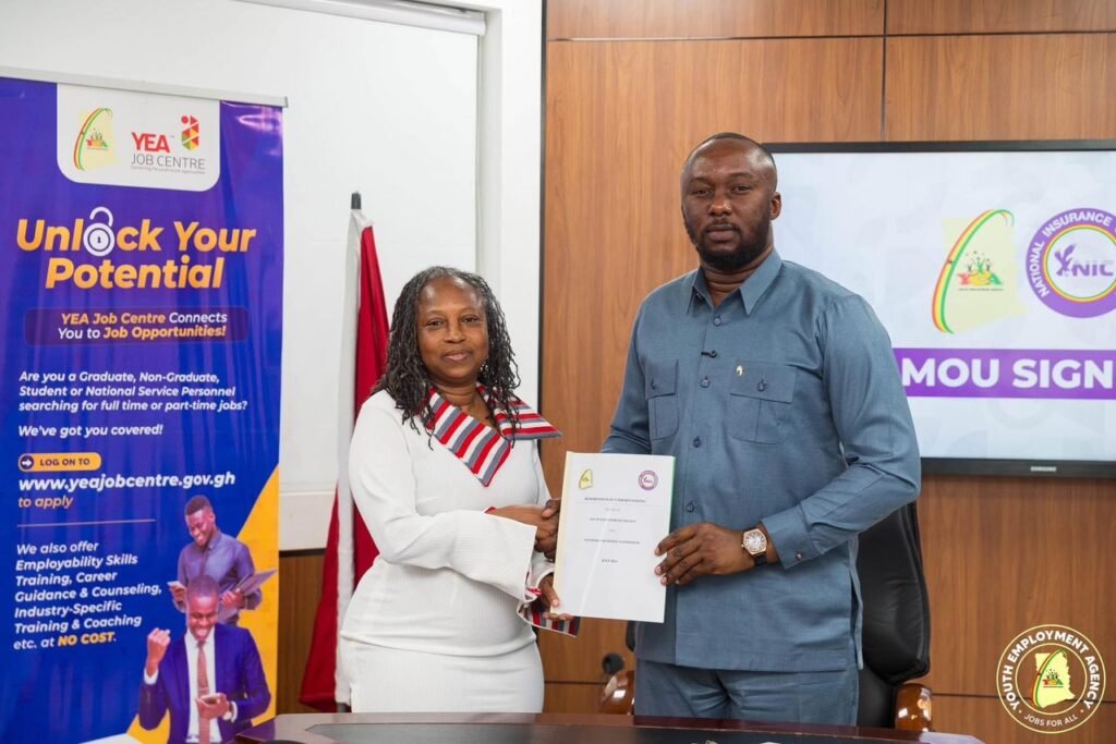 A Memorandum of Understanding (MoU) was signed to formalise the partnership, with the Chief Executive Officer of YEA, Malik Basintale, signing on behalf of the agency, and Dr. Abiba Zakaria, Commissioner of Insurance, signing on behalf of the NIC.